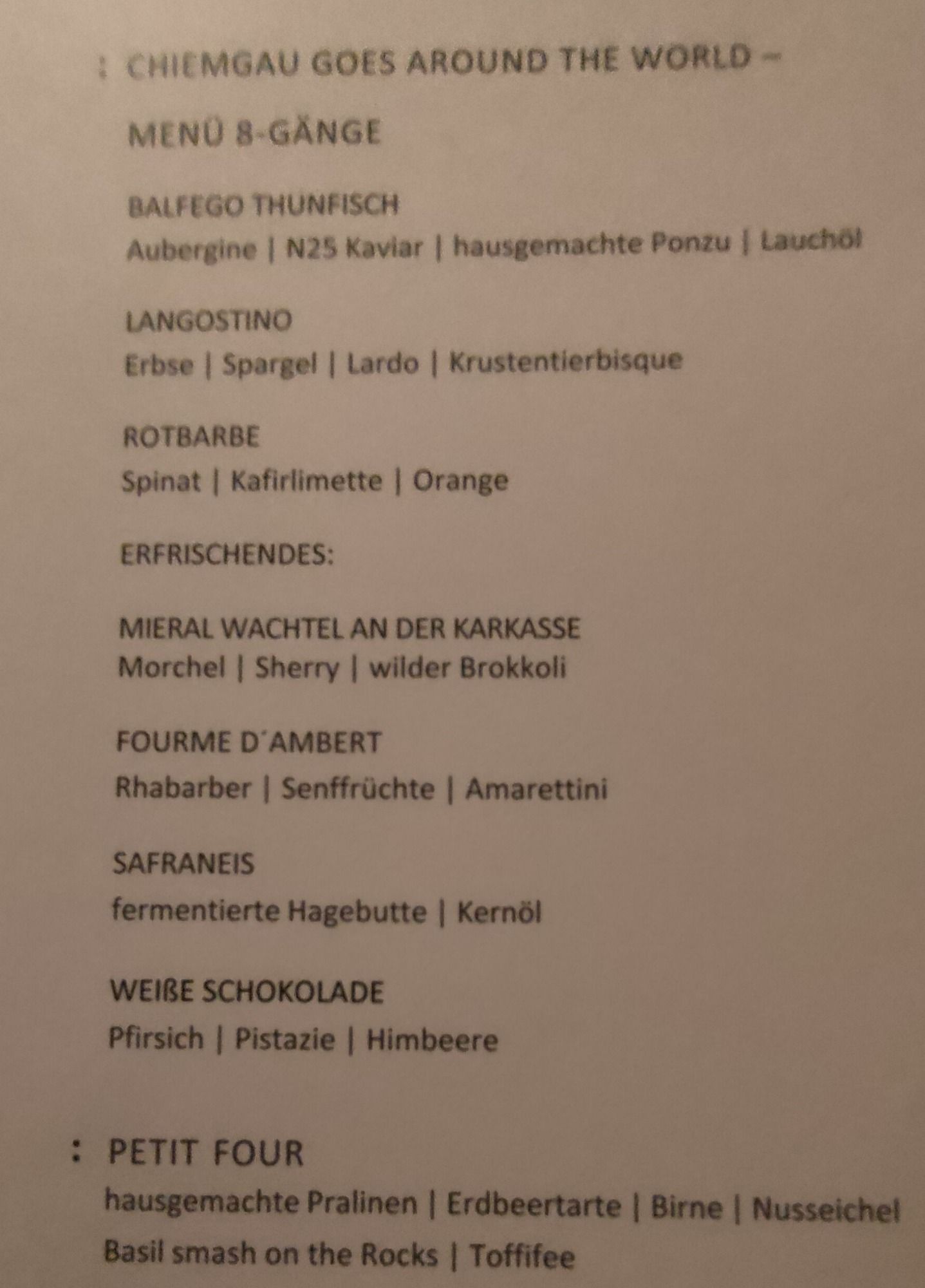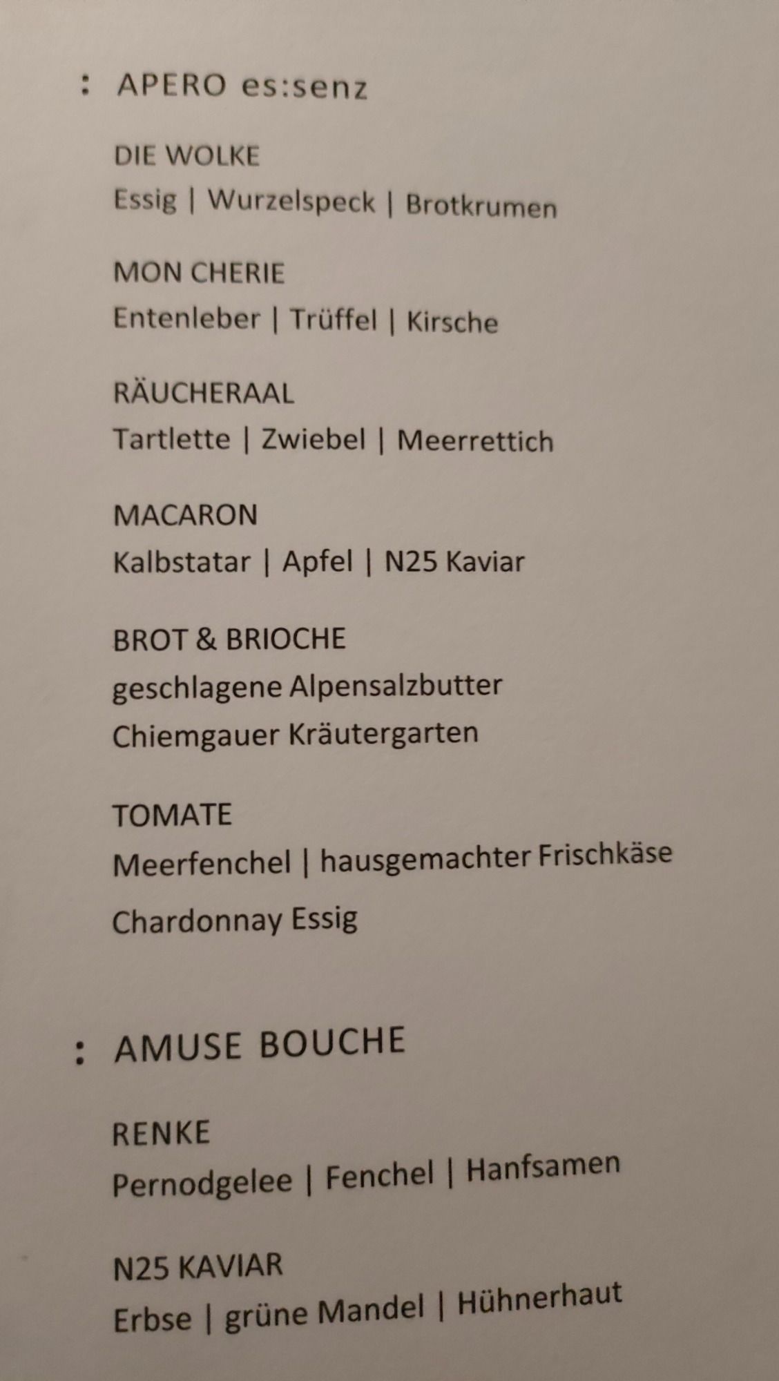 Vor dem eigentlichen Dinnerbeginn wurde ein spektakulärer Apero gereicht, wir waren schon beinah nicht mehr in der Lage 8 Gänge zu essen.
